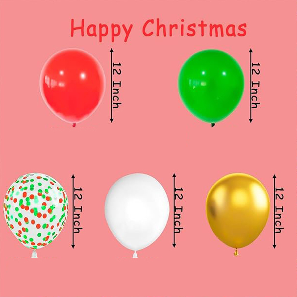 Pripojený je príručka na usporiadanie vianočných balónov so zmiešanou farbou 12 palcov, ktorá je rozobraná:
