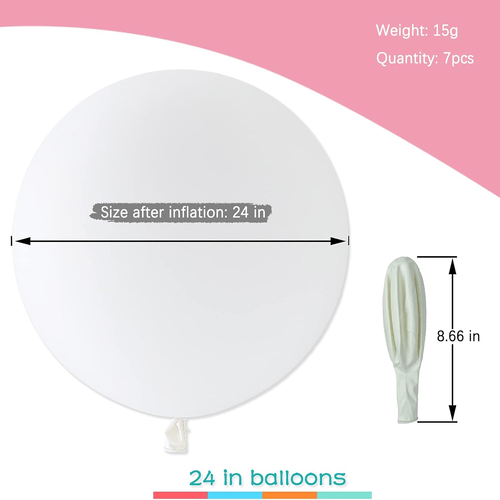 Farby 24-palcového latexového balóna sú rôzne, vrátane bielej, čiernej, modrej, zelenej, červenej atď. Sú veľmi atraktívne vďaka farebnému povrchu. Bez ohľadu na to, aké farby použijete, balón bude veľmi pútavý a rýchlo umocní atmosféru vašej párty.