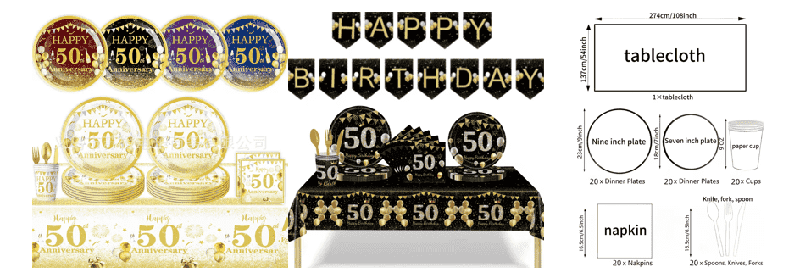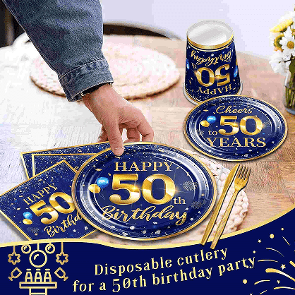 Súprava jednorazového riadu k 50. narodeninám obsahuje 7-palcový dezertný tanier, 9-palcový tanier hlavného jedla, savý obrúsok, potravinársky plastový nôž, vidličku a lyžicu. 7-palcový papierový tanier je vhodný na koláče a občerstvenie a 9-palcový papierový tanier pojme jedálenské jedlá. Obrúsky sú mäkké a šetrné k pokožke, silné pri absorpcii vody, plastové nože, vidličky a lyžice sú pevné, bezpečné a netoxické a možno ich ihneď po použití zlikvidovať, čím sa šetria problémy s čistením, čas a práca. Naša súprava balónového riadu k 50. narodeninám je vhodná na narodeninové oslavy, výročia, odchody do dôchodku a iné špeciálne príležitosti. Zahrajte si naplno so svojou kreativitou a použite tieto dekorácie v rôznych scénach, aby bola každá aktivita úžasnejšia a nezabudnuteľnejšia.