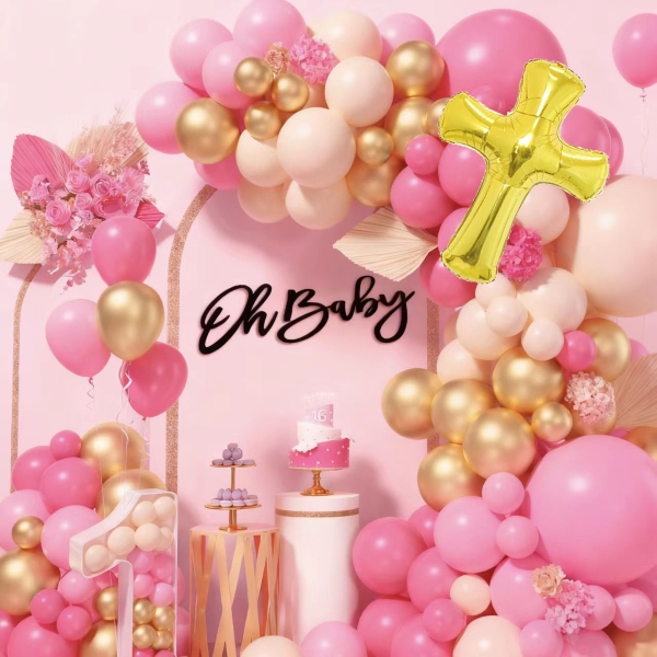 Balónové oblúkové súpravy pre bábätká majú dva štýly, jeden štýl je pre dievčatká a jeden štýl je pre chlapcov. Súprava pre dievčatko je vyrobená z balóna makarónovej ružovej farby, matného balóna svetloružovej farby, matného balóna svetlej farby pleti, balóna metalickej zlatej farby a zlatého kríža boh žehná. Súprava pre chlapčeka je vyrobená z balóna makarónovej modrej, retro balóna morskej modrej, matného balóna svetlej farby pleti, balóna metalickej zlatej farby a zlatého krížika. Obe majú lepiacu bodku a balónik, z ktorých sa dá vyrobiť celkom pekná girlanda.