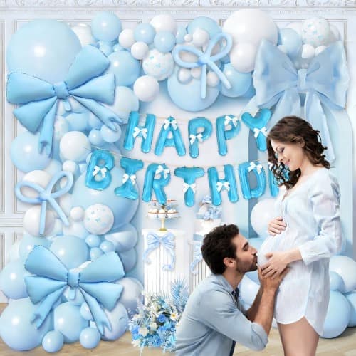 Táto sada obsahuje balón makarónovej modrej farby 5 palcov, 10 palcov, 12 palcov a 18 palcov, matnú bielu farbu 5 palcov, 10 palcov, blahoželanie k narodeninám, fóliový makrónkový modrý mašľový balón, makarónový modrý 260 dlhý balón, stuhu, lepiacu bodku a ozdobný prúžok balónika.