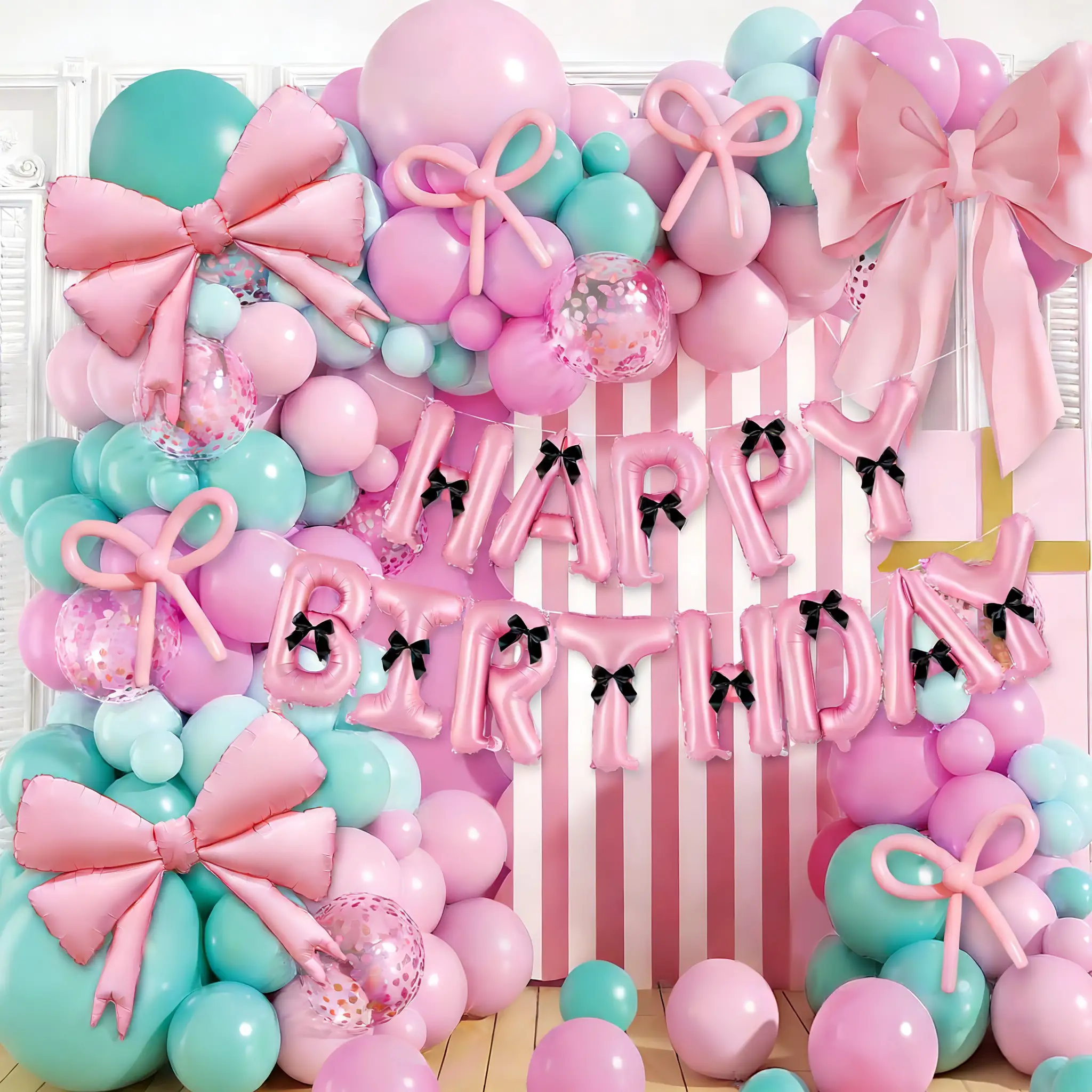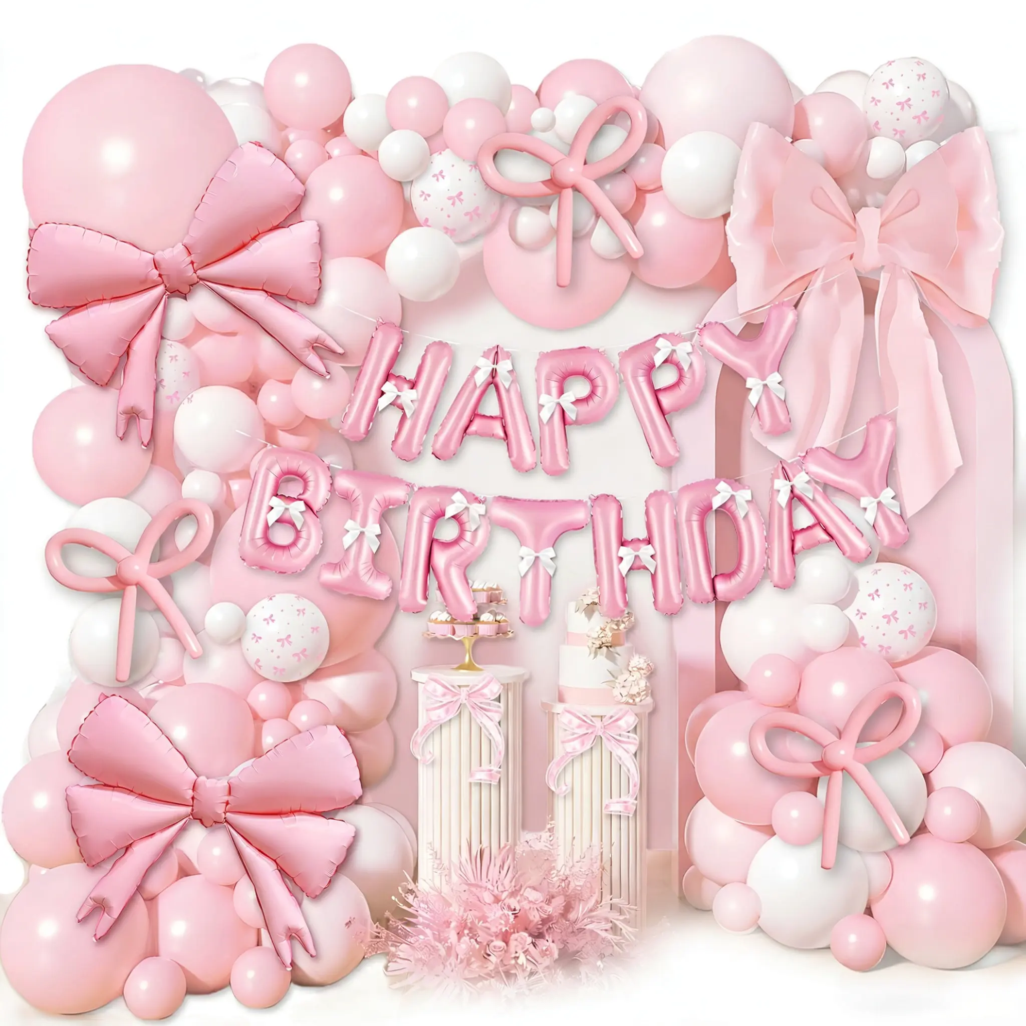 Táto sada obsahuje matný baby ružový balón 5 palcov, 10 palcov, 12 palcov a 18 palcov, matnú bielu farbu 5 palcov, 10 palcov, fóliový ružový balónik s mašľou, matný baby ružový 260 dlhý balón, mašľu zo stuhy, lepiacu bodku a ozdobný prúžok balónika.