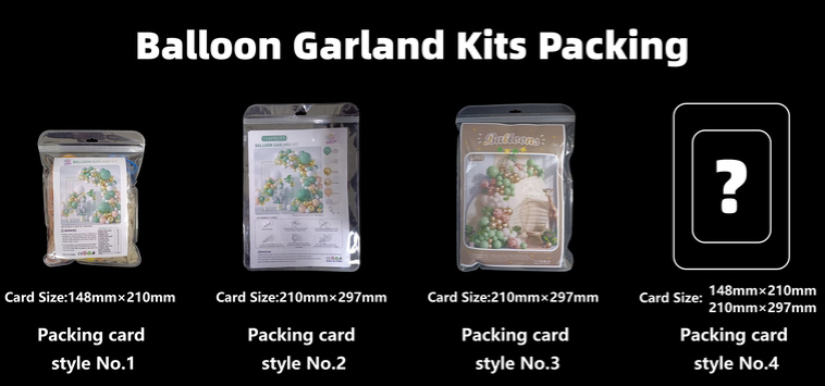 Pre balenie balónových súprav, ak len prispôsobíte baliace karty, moq je 50 sád, ak je vonkajší kartón vyrobený na mieru, moq je 500 kusov.
