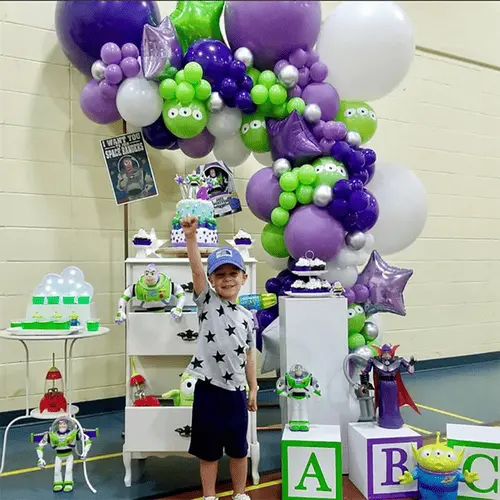 Buzz Lightyear balónový oblúk je štýl slávnej Disney postavičky: Buzz Lightyear z Toy Story. Má veľké množstvo fanúšikov po celom svete, od detí až po dospelých, s výraznou fanúšikovskou základňou. Súprava NiuN® sa teda pre podnikanie našich klientov veľmi dobre predáva.