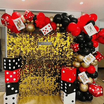 Hlavne v klasickej červenej, čiernej a zlatej farebnej schéme, čo je najikonickejšia farebná kombinácia na kasínovej scéne a štýl s najvyšším objemom nákupov. S čistou jasnou červenou a matnou tmavou čiernou ako základ a s kovovými zlatými latexovými balónikmi ako vrstvenými ozdobami obnovuje luxusnú a tajomnú základnú atmosféru kasína, spĺňa potreby dekorácie veľkej väčšiny zákazníkov a má mimoriadne silnú všestrannosť.