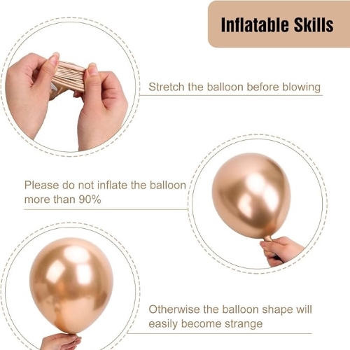 Naše balóny šampanského balónového oblúka sú vyrobené z vysoko kvalitného prírodného latexu, s jasnými farbami a dobrou elasticitou. Po nafúknutí si zachovajú plný tvar a dokážu si dlho zachovať efekt dekorácie. Produkty prešli bezpečnostnými certifikáciami EN71-1/2/3, CE, CPC, spĺňajú globálne normy predaja a sú bezpečné pre všetky strany a udalosti.