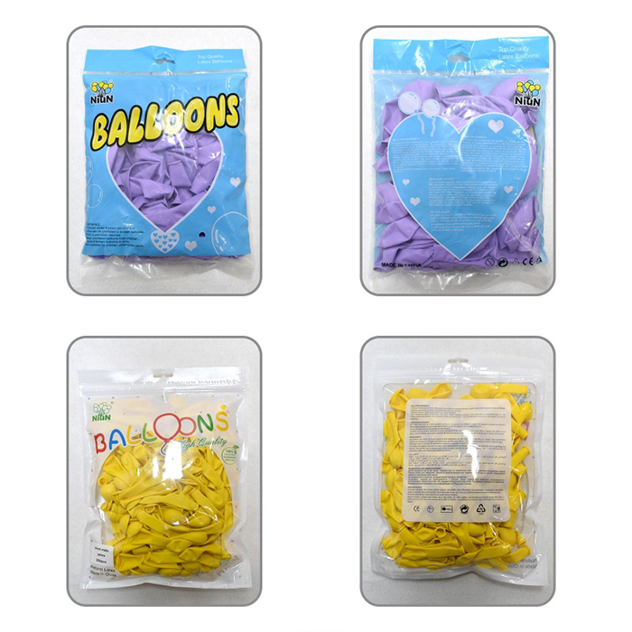 NiuN® Balloon Factory majú vlastnú značku, zároveň si navrhli vlastné balenie, o latexových balónoch na konfety máme dva druhy balenia, ako je znázornené na obrázku, jedno je modré vrecko druhé je biele na zips, môžete si vybrať svoje obľúbené balenie. Okrem toho, ak je množstvo vašej objednávky viac ako 20 000 vriec, podporujeme aj dizajn baliacich vreciek podľa vášho loga. Vykonáme profesionálny dizajn podľa súboru s logom, ktorý poskytnete, a celkového štýlu balenia, aby sme zabezpečili, že logo bude krásne a v súlade s imidžom vašej značky. Po dokončení prvého návrhu návrhu vám ho zašleme e-mailom alebo online komunikačnými nástrojmi. Môžete predkladať návrhy na úpravu. Náš dizajnérsky tím ho upraví podľa vašej spätnej väzby, vrátane zhody farieb, veľkosti a polohy loga atď., kým nebudete úplne spokojní s plánom dizajnu, potom sa uskutoční hromadná výroba.