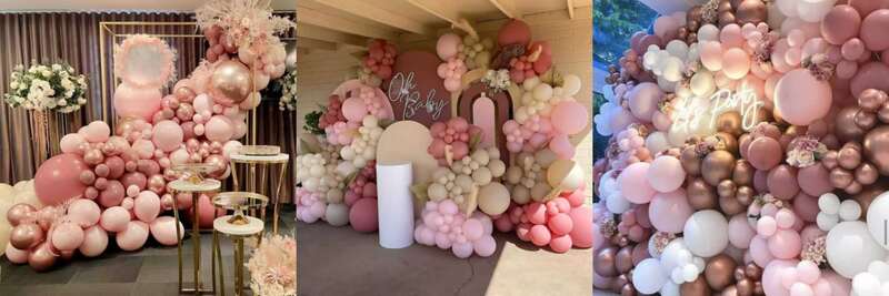 Malá súprava zaprášeného ružového balóna:Táto malá súprava sa skladá z 50 až 80 kusov ružových balónov. Na zvýšenie efektu vrstvenia súpravy môžete pridať aj biele, marhuľové a priehľadné balóniky. Naplňte ich héliom a potom ich môžete pomocou stuhy zviazať a potom ich nechať vznášať sa vo vzduchu.