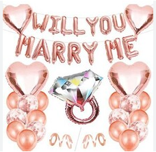 Štýl obleku je vyrobený hlavne z fóliových balónov s diamantovými zásnubnými prsteňmi, zladených s hviezdicovými fóliovými balónikmi a tematickými okrúhlymi balónmi a celkový súlad je jednoduchý a atmosférický. Zároveň podporuje personalizované prispôsobenie a dokáže prispôsobiť typ a množstvo balónov podľa potrieb, ako napríklad pridanie listových fóliových balónov, ako sú I DO a MARRY ME, aby sa ešte viac posilnila atmosféra priznania a návrhu.