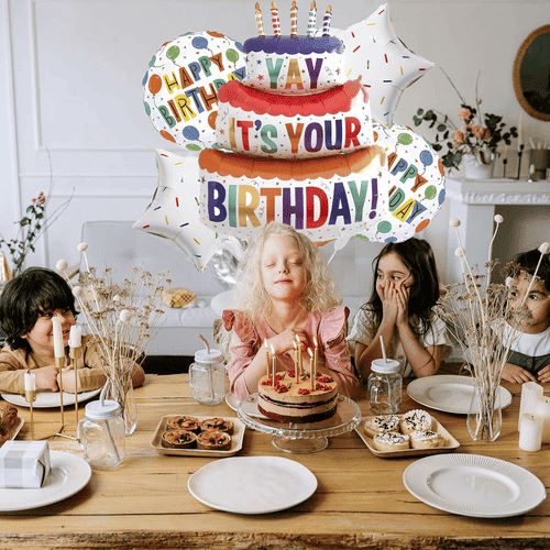 Fóliový balónik na tortu je najdôležitejšou vecou v narodeninovej súprave fóliového balóna. Okrem toho má aj hviezdicový fóliový balónik a okrúhly narodeninový fóliový balón.