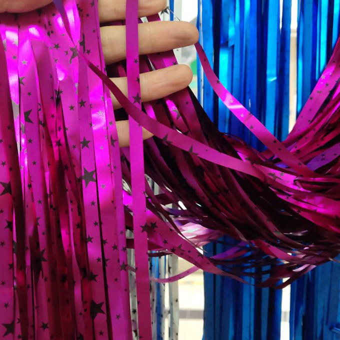 ①RICH a rozmanité farby, vrátane plnej farby, laserovej farby, farby makarónie atď. A niektoré fóliové záclony majú trblietavé a postupné efekty zmeny a môžu byť tiež navrhnuté do rôznych tvarov, ako sú päť hviezd, broskyňové srdcia atď., Ktoré môžu pridať vrcholy scény a vytvárať jedinečnú atmosféru.