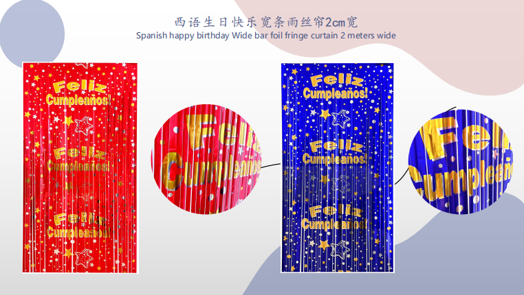 Fóliová opona s dúhovými farbami, makarónovými farbami a ďalšími farebnými kombináciami sú vhodné na narodeninové oslavy pre deti. Existujú tiež lesklé fóliové závesy, ako je zlato a striebro, ktoré sú vhodné pre oslavy narodenín pre dospelých, oslavy výročia atď. Môžu byť usporiadané na stránkach večierkov, hotelových banketových halách atď.