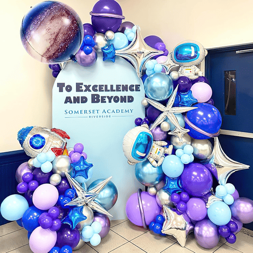 Áno, náš dizajnérsky tím vám pomôže s prispôsobením balónovej girlandy s témou galaxie. A váš obchodný manažér vám ponúkne komplexnú službu.