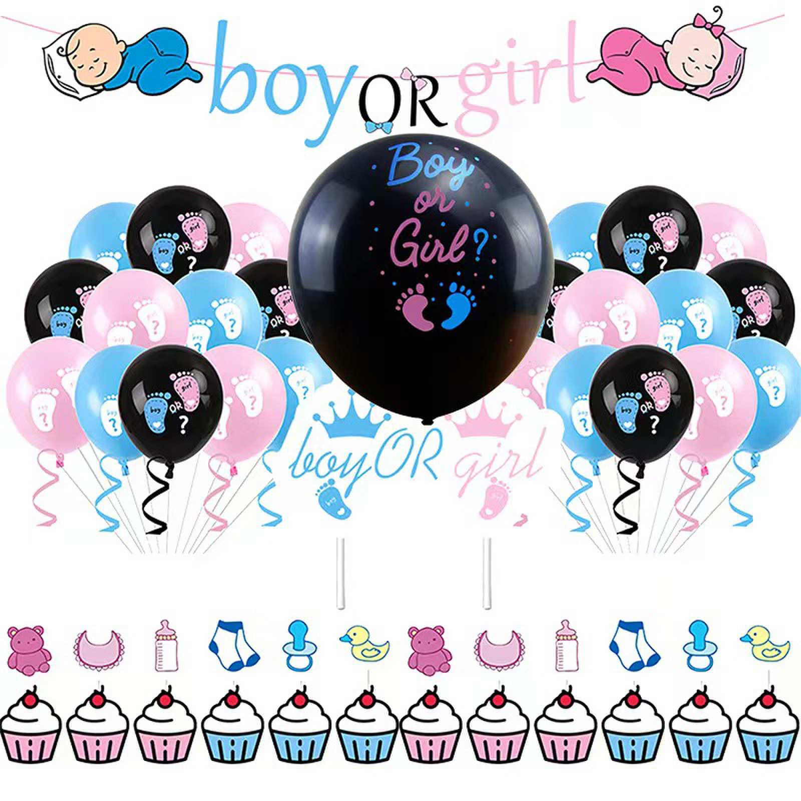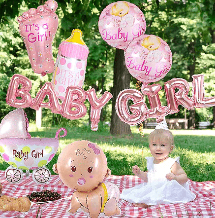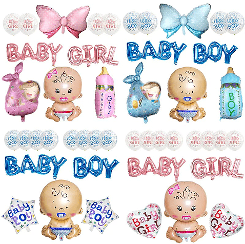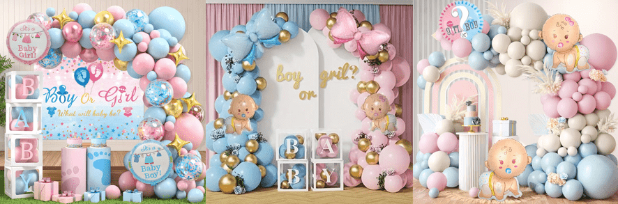 Základná balónová súprava je zladená hlavne s dvoma hlavnými farbami ružovej a modrej farby a ako dekorácia sa pridávajú niektoré flitrové balóny a hliníkové balóny s hliníkmi s písmenami.