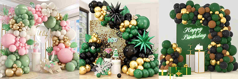 Môžete použiť biele alebo hruškovo biele balóniky so zeleným a zlatým balónovým oblúkom. Stane sa mäkkým a teplým a bude sa podobať na zachytenie sviežosti jarnej záhrady; v spojení s ružovými balónikmi môže vytvoriť žiarivý pocit, ktorý je sladký, bez toho, aby bol šmrncnutý, vdýchne romantickú atmosféru bábätkám a večierkom s dievčenskou tematikou; dokonca aj v kombinácii s hlbšími farbami, ako je čierna a hnedá, zelené a zlaté farby dokážu vyvážiť hĺbku a stabilitu týchto odtieňov s nápadným farebným napätím a vytvoriť tak modernú, no zároveň teplú slávnostnú atmosféru.