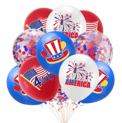 Balón Happy 4th of July je vyrobený z bezpečných a ekologických materiálov, latexové balóny sú 100% prírodný latex a fóliové balóny sú fólie z potravinárskej fólie.