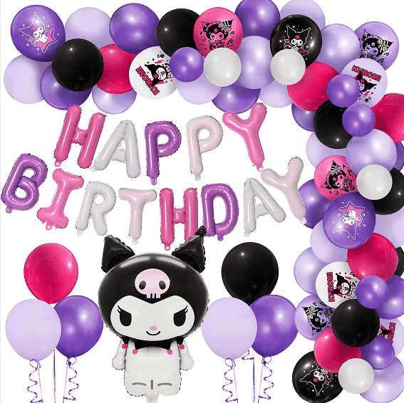 1. Vlastný balón Kuromi Party Balloon: Poskytnite prispôsobenie balónov fólie (vzor a tvar), latexová tlačová tlač a štýl dizajn balóna a venca.
