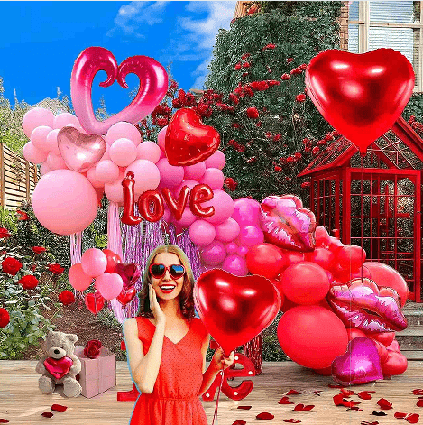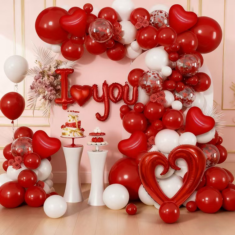 Valentínsky romantický balíček: balónik na pery+balónik lásky+konfetový latexový balónik+lepiaci bod na stuhu, vhodné na svadbu, svadbu, spoveď