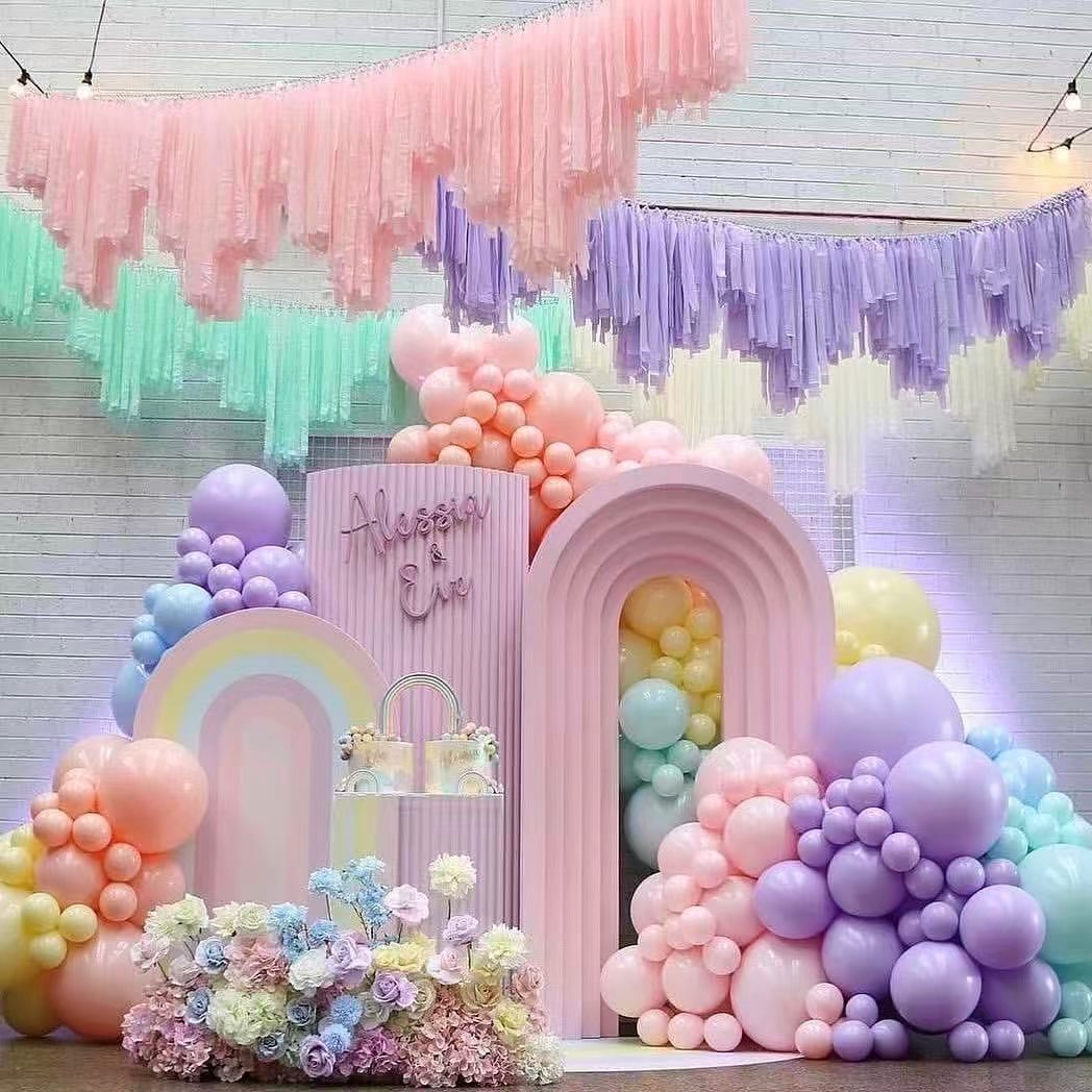 Macaroon farebné balóny Garland Arch je obľúbený pre svoje mäkké a zasnené farby. Celá sada sa zameriava na 12 jemných farieb makarónov. Má červenú, makaroon modrú, makaroon fialovú a ďalšie farby. Každá farba prináša svieži a romantický vzhľad.