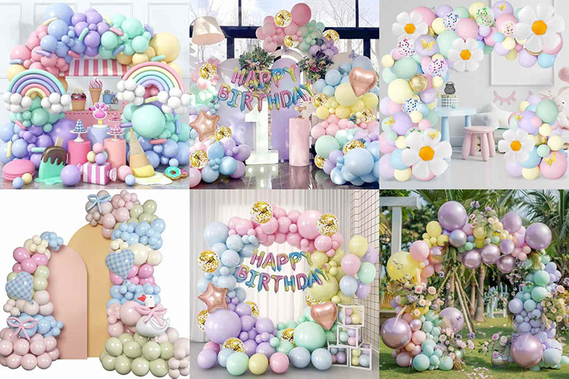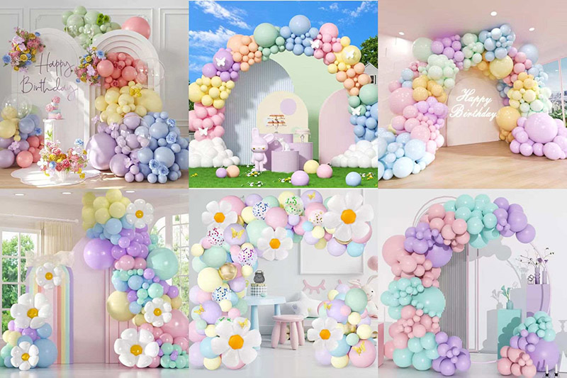 Číslo fólie a písmenové balóny sa môžu pripojiť k makaronským balónikom Garland Arch. Ukazujú vek k narodeninám, sviatočnú tému alebo značku. Balóny srdca a hviezdnej fólie dodávajú zvýraznenie v mäkkých farbách. Umožňujú, aby nastavenie malo viac vrstiev a vizuálneho dopadu. Lesklý povrch fóliových balónov kontrastuje s matným vzhľadom makarónových latexových balónov. Vďaka tomu je dekorácia v poriadku.