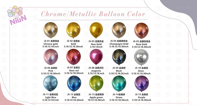 Farba: Kovové balóny majú 15 farieb. Môžete ich ľubovoľne miešať pre nekonečné vizuálne efekty.