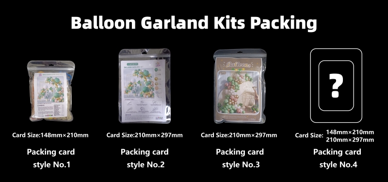 Druhou sú OPP tašky s papierovou kartou. Ponúkame dva štýly papierových kariet; môžete si vybrať svoj preferovaný dizajn alebo si vytvoriť svoj vlastný. Tento obal je vhodnejší na offline predaj, napríklad v supermarketoch. Balíky balónov môžu byť zavesené na policiach alebo vystavené na pultoch. Papierová karta vo vnútri umožňuje zákazníkom jasne vidieť štýl balíka.