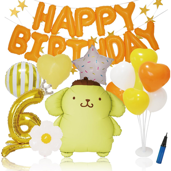 NiuN® Balloon Factory tiež spárovala súpravu na párty pre latexový balónik s potlačou PomPomPurin, ktorý obsahoval banner k narodeninám, tortu na tortu, latexový balónik s potlačou PomPomPurin, topper na košíčky a ďalšie. Obrázky na týchto dekoráciách sú farebné a využívajú technológiu tlače šetrnú k životnému prostrediu, aby účinne upútali pozornosť a zvýšili vizuálnu príťažlivosť párty. Táto súprava dekorácií je navrhnutá tak, aby sa dala ľahko zostaviť, bez toho, aby ste trávili veľa času, a mohli ste sa s deťmi zabaviť. Narodeninový banner sa dá jednoducho zavesiť na strop alebo stenu, banner je farebný a balón sa ľahko nafúkne. Ozdoby na tortu sú krásne urobené. S týmito potrebami na narodeninovú oslavu môžete okamžite začať úžasnú narodeninovú oslavu.