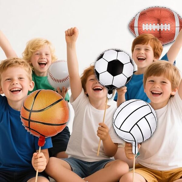 ---Thešportové fóliové balónymôžu byť použité samostatne alebo v kombinácii s inými balónikmi na vytvorenie girlandy a inej súpravy balónov. Použitie bodkového lepidla, stužiek a rybárskeho drôtu vám pomôže lepšie ich umiestniť.