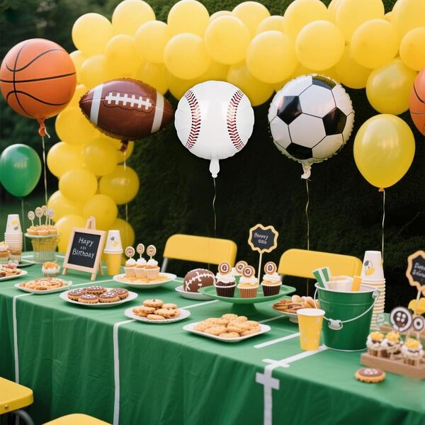 2.Balónová girlanda so športovými fóliovými balónikmi:Športové fóliové balóny zohrávajú v girlandovom sete významnú úlohu. Prinášajú športovú atmosféru na vaše párty. Futbalový štýl je najobľúbenejší v sérii.