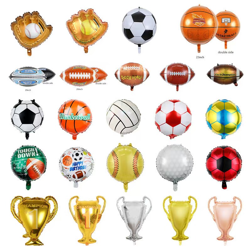 Dizajn pokrýva modelovanie športových potrieb, basketbal, futbal, činky, trofeje, siluety športových postáv, "WIN", "GOAL" a "CHAMPION" a iné motivačné písmená. Jeden veľký balónik (18-36 palcov) nevyžaduje komplikované párovanie a môže sa stať vizuálnym ohniskom, keď je zavesený v strede alebo pri vstupe do aktivity. Je vhodný najmä pre scény, ako je fandenie veľkým udalostiam, vonkajšie športové aktivity a športové hry v areáli, okamžite zapáli nadšenie zo scény.