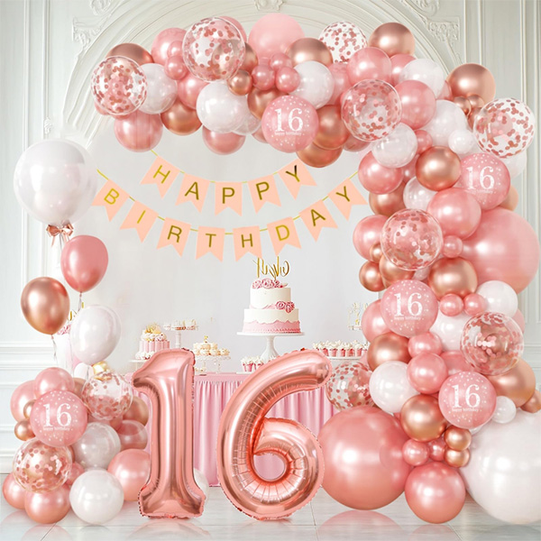 Balónový oblúk Sweet 16 tento balík obsahuje latexové balóny, fóliové balóny, narodeninové bannery, lepiace škvrny, stuhy atď. Ak máte špeciálne potreby, môžeme tiež prispôsobiť veľkosť balóna, množstvo, farbu atď. v rámci balíka podľa vašej požiadavkys.