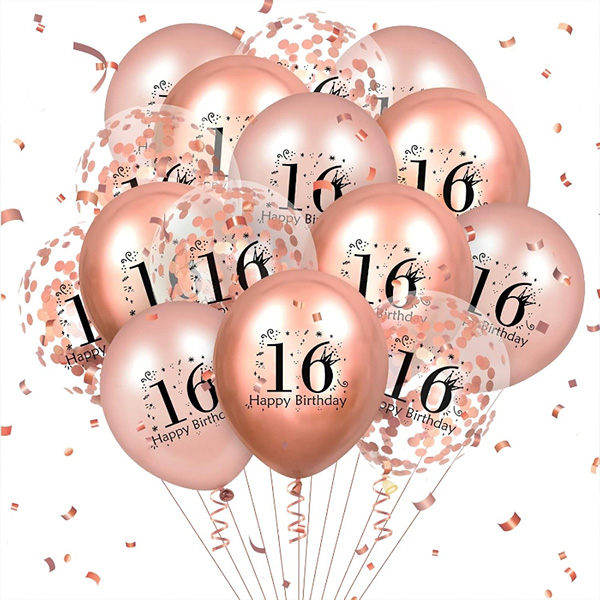 Potlačený latexový balón k 16. narodeninám:Tento latexový balón s potlačou k 16. narodeninám vyrobený našou továrňou je veľmi vhodný na oslavy 16. narodenín a príležitosti osláv 16. výročia. Na výber máme rôzne farby. Ukážeme ružové zlato, čierne zlato, fialové zlato, modré a čierne. Môžeme tiež prispôsobiť 16 vytlačených balónov podľa vašich požiadaviek. Sú výbornými rekvizitami v pozadí pri fotení a dokážu týmto scénam dodať radosť a aktívnu atmosféru. Tento vytlačený balónik môže byť naplnený vzduchom, héliom alebo dokonca vodou a nie je ľahké ho poškodiť alebo zmeniť farbu. Je to skvelá dekorácia na všetky druhy osláv 16. narodenín alebo rodinných stretnutí. Použite tento latexový balón s ďalšími párty dekoráciami a dekoráciami pre ešte viac zábavy.