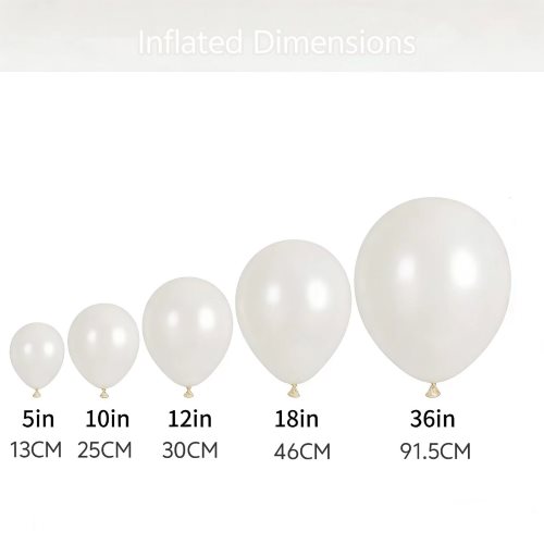 Bežné veľkosti bielych balónov perleťovej farby na sklade: 5,10,12,18,36 palcov (okrúhle). K dispozícii sú vlastné veľkosti od 10 do 36 palcov, ako aj vlastné perleťové biele balóny v tvare srdca. MOQ je možné dohodnúť.