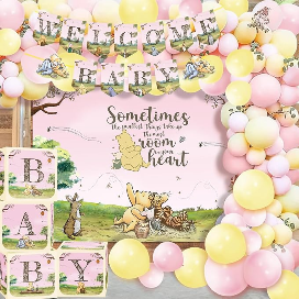 Súprava girlandy s balónikovým oblúkom Macko Pú je najpredávanejším produktom našej továrne s rôznymi štýlmi a bohatými farbami. Táto súprava sa skladá hlavne z latexového balóna Macka Pú rôznych veľkostí. Naše balóny sú vyrobené z prírodného kaučuku a vysoko kvalitných materiálov z hliníkovej fólie a prešli prísnymi bezpečnostnými testami, sú šetrné k životnému prostrediu a netoxické, takže ich môžete s istotou používať. Máme tiež zodpovedajúci medvedí riad, handričku na pozadie, balónové škatule atď., Ktoré sú tiež vyrobené zo zelených a ekologických surovín. Utierka na pozadie slúži ako očarujúce pozadie pre fotobúdku alebo dezertný stôl, zatiaľ čo dekoratívna papierová krabička dodáva očarujúci nádych darčekovej expozícii alebo malému darčeku na párty. Súprava balónového oblúka Macko Pú je ideálna na narodeniny, odhalenie pohlavia, svadby, krstiny, výročia a iné tematické večierky. Či už ide o stretnutie priateľov alebo rodinné stretnutie, môže priniesť nezabudnuteľný zážitok pre vás a vašich priateľov.